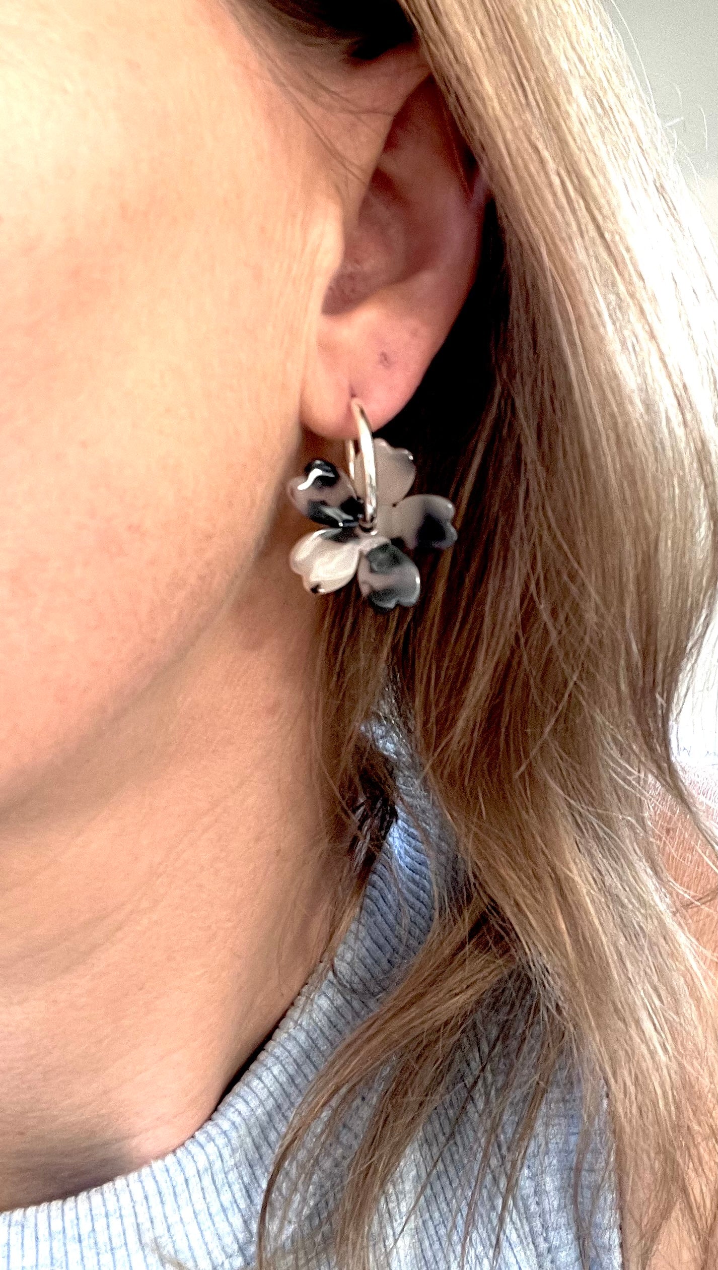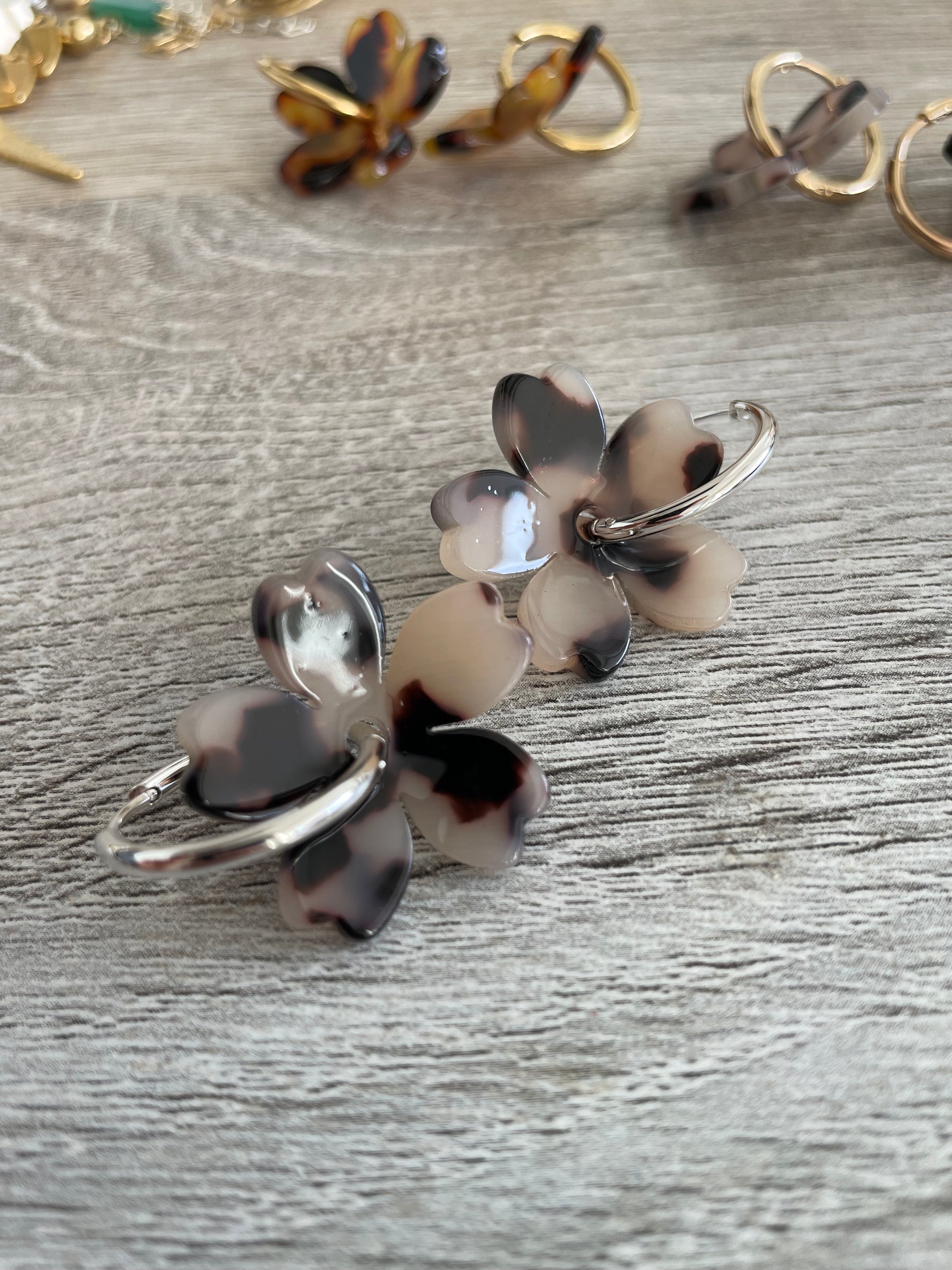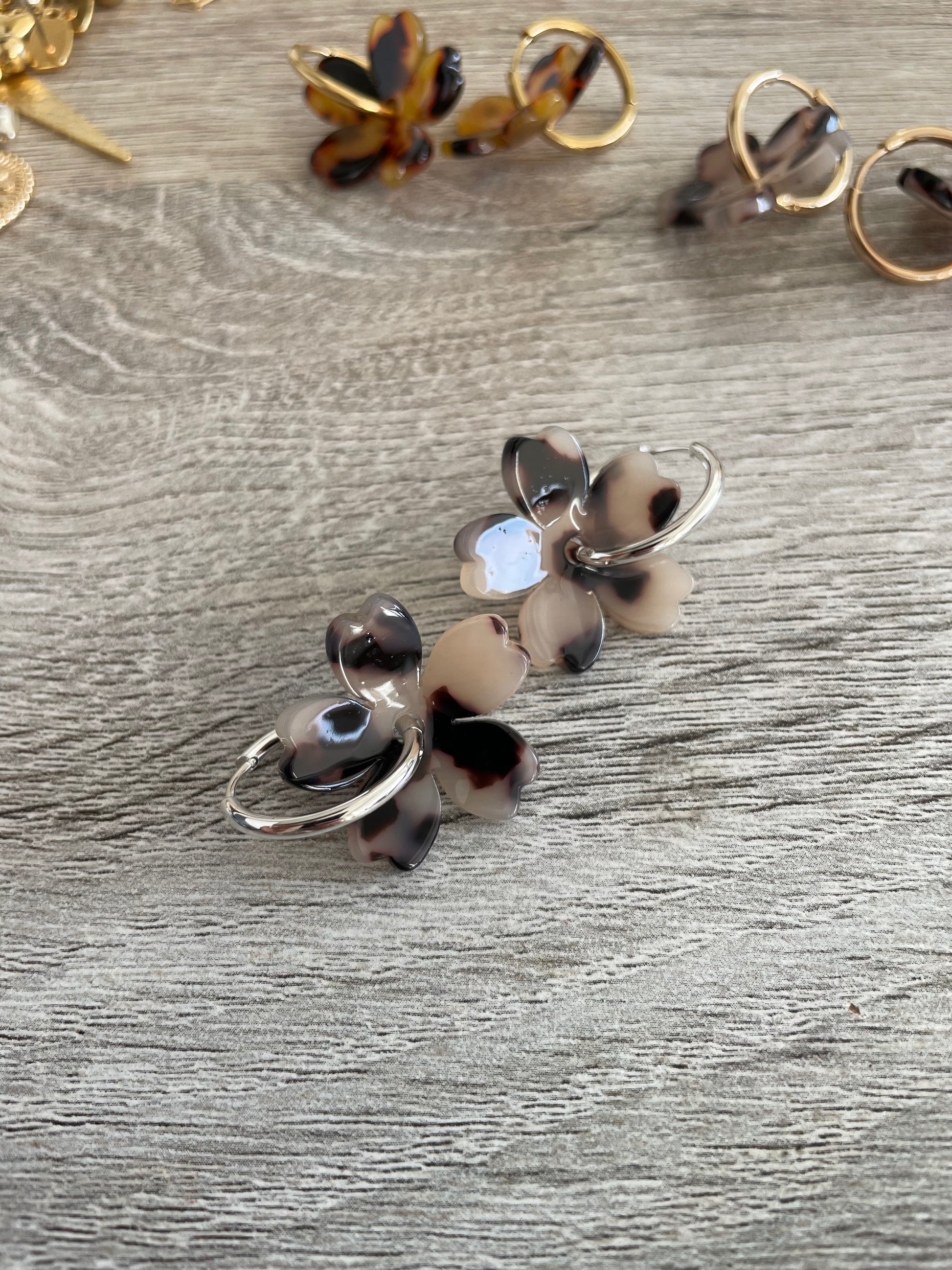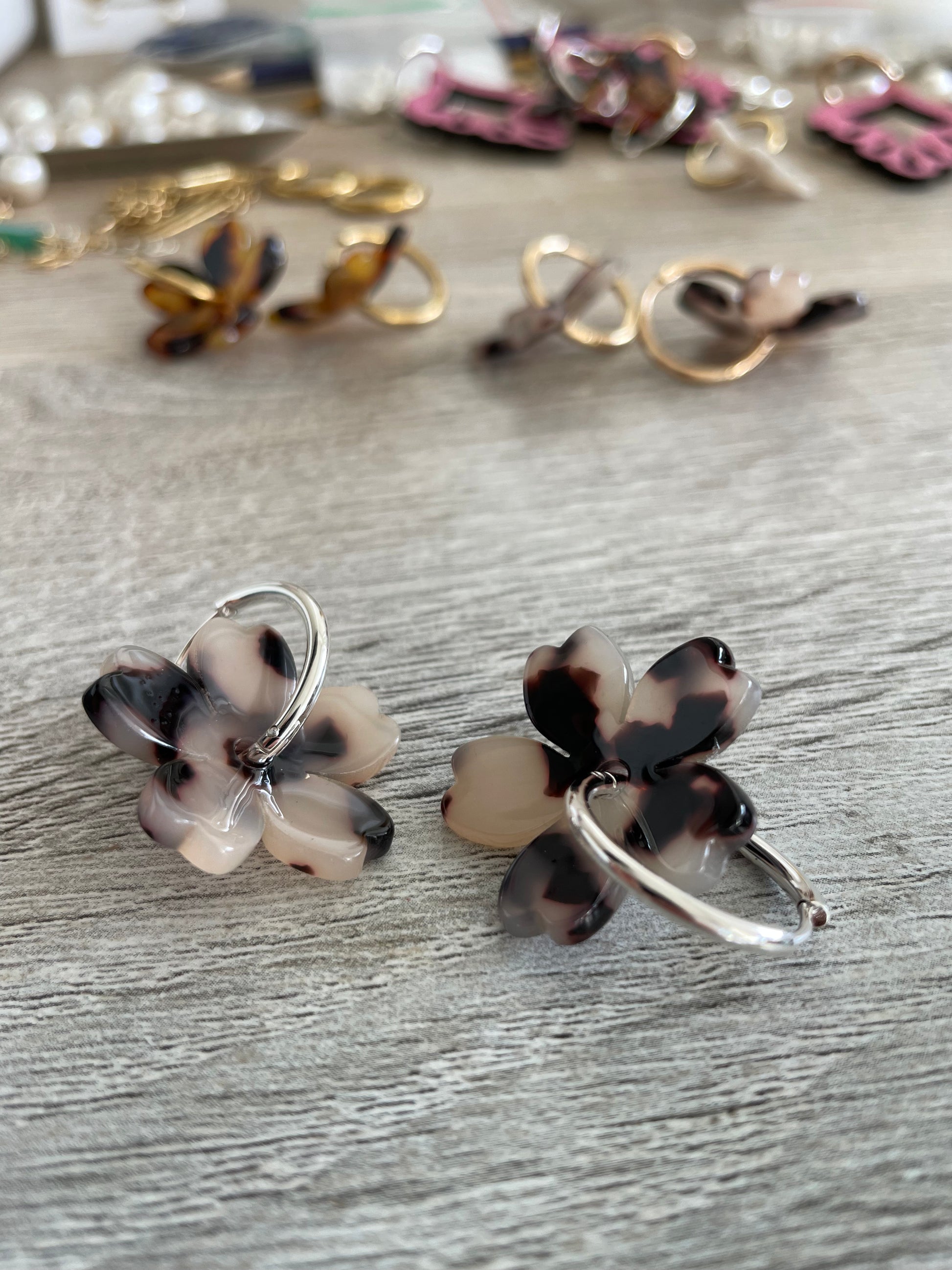 Blonde Tortoiseshell Blooms on Silver Hoops