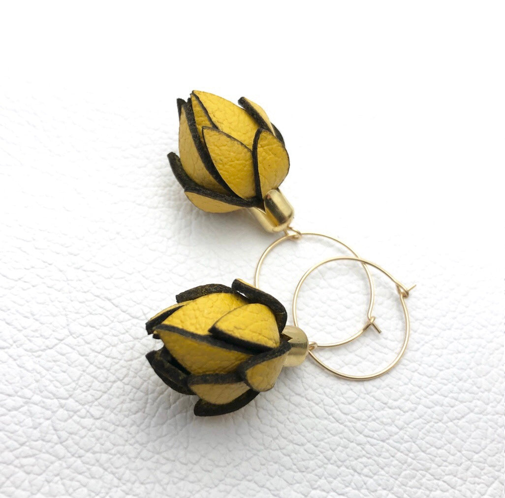 Wild Flower Buds -Yellow in your choice of Gold Filled Hoops or Ear Wires