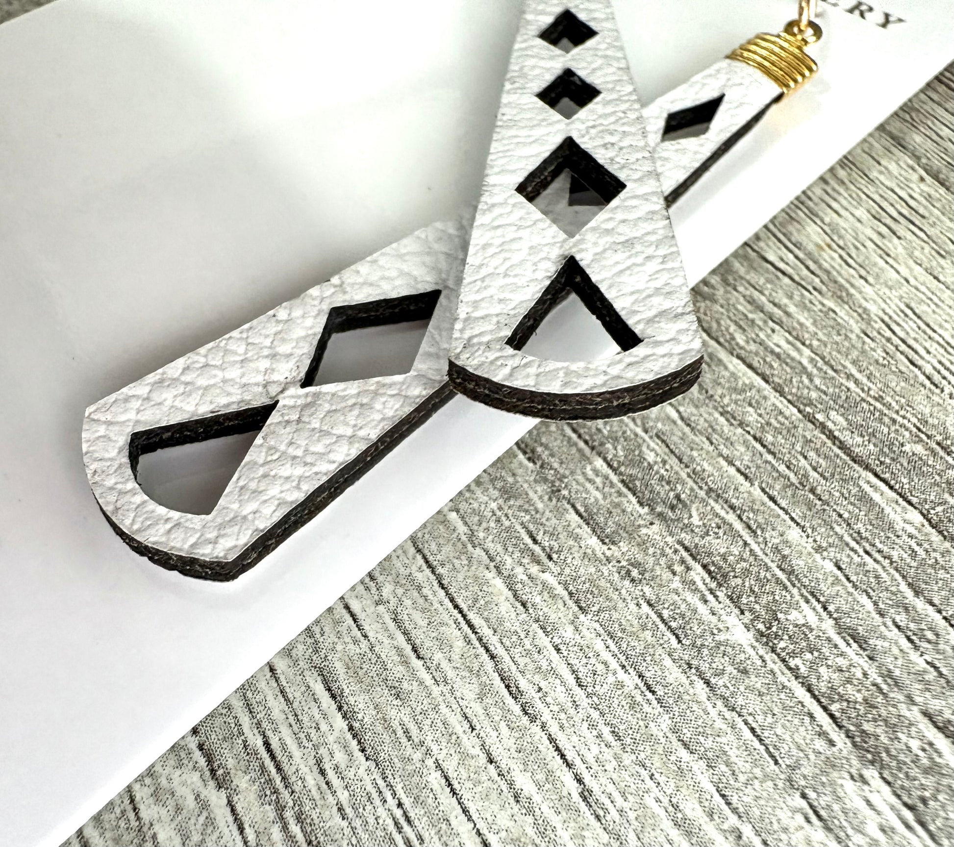 Diamond Sticks - White Leather Earrings