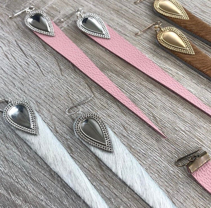 These exotic earrings come in a range of leather colours and metal teardrop colour choices