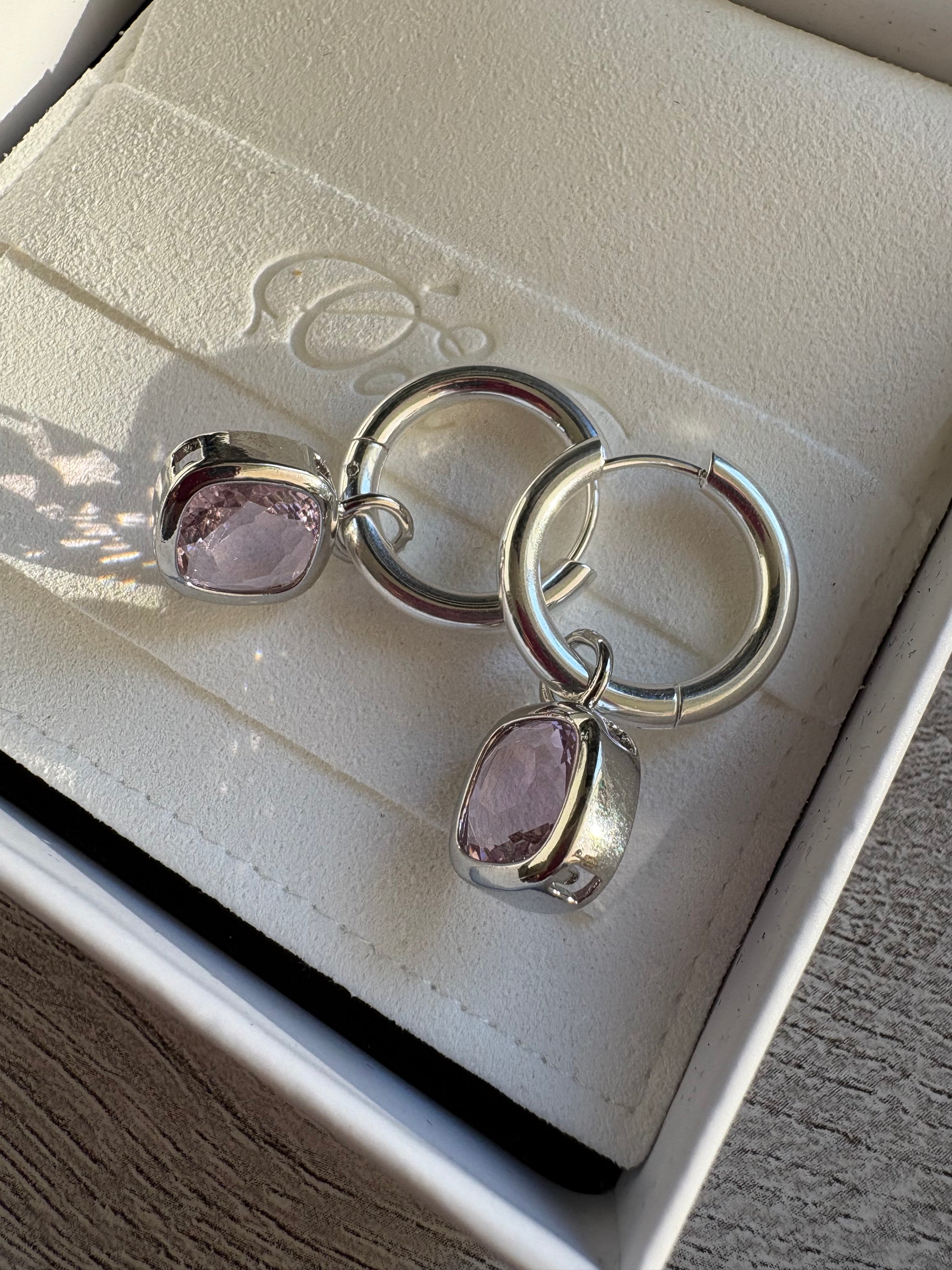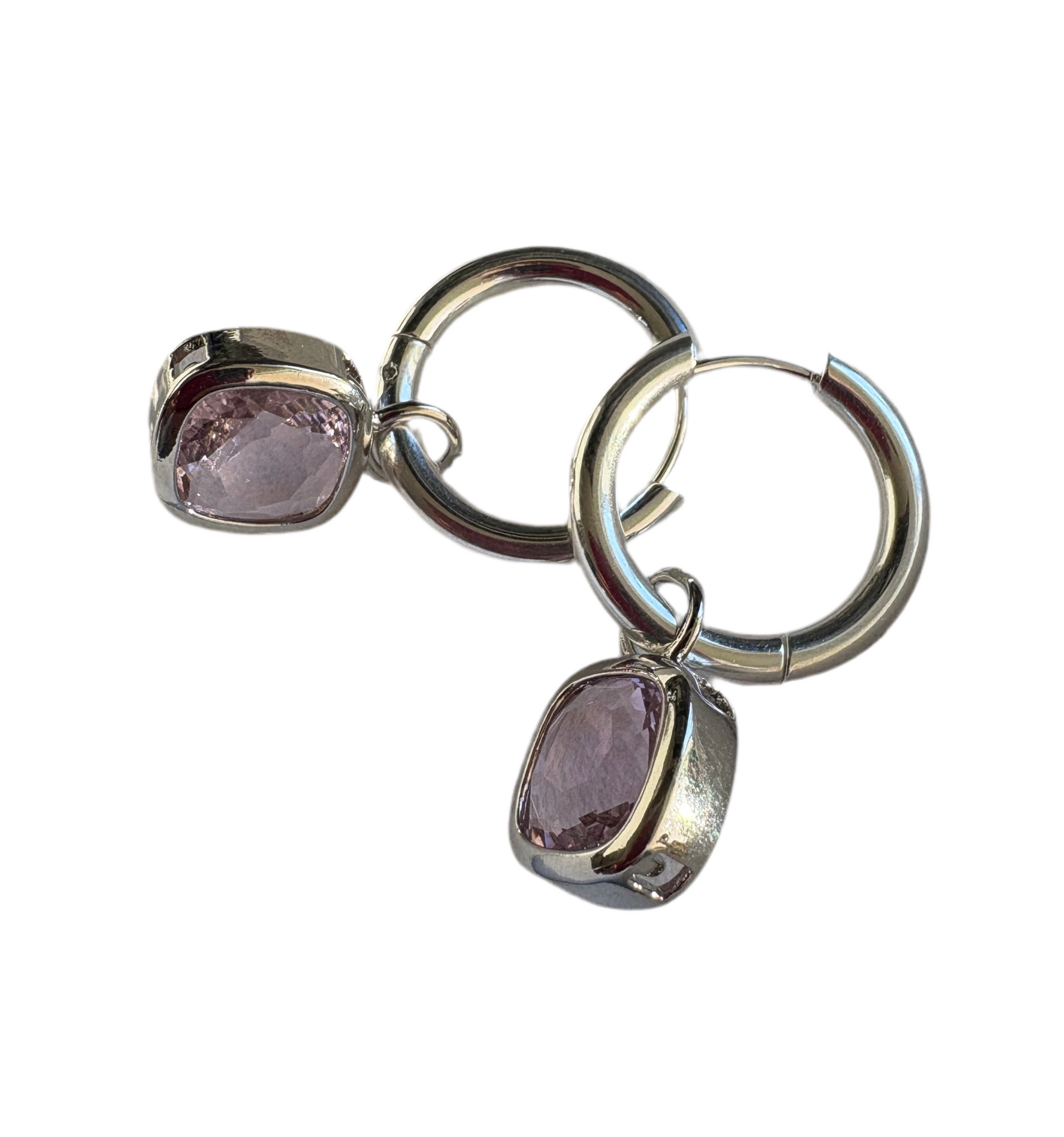 Glass Cushion Hoops Silver/Pink