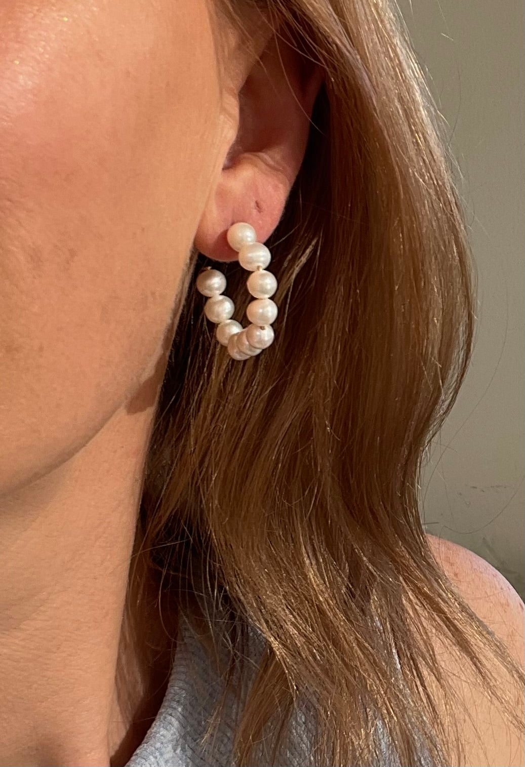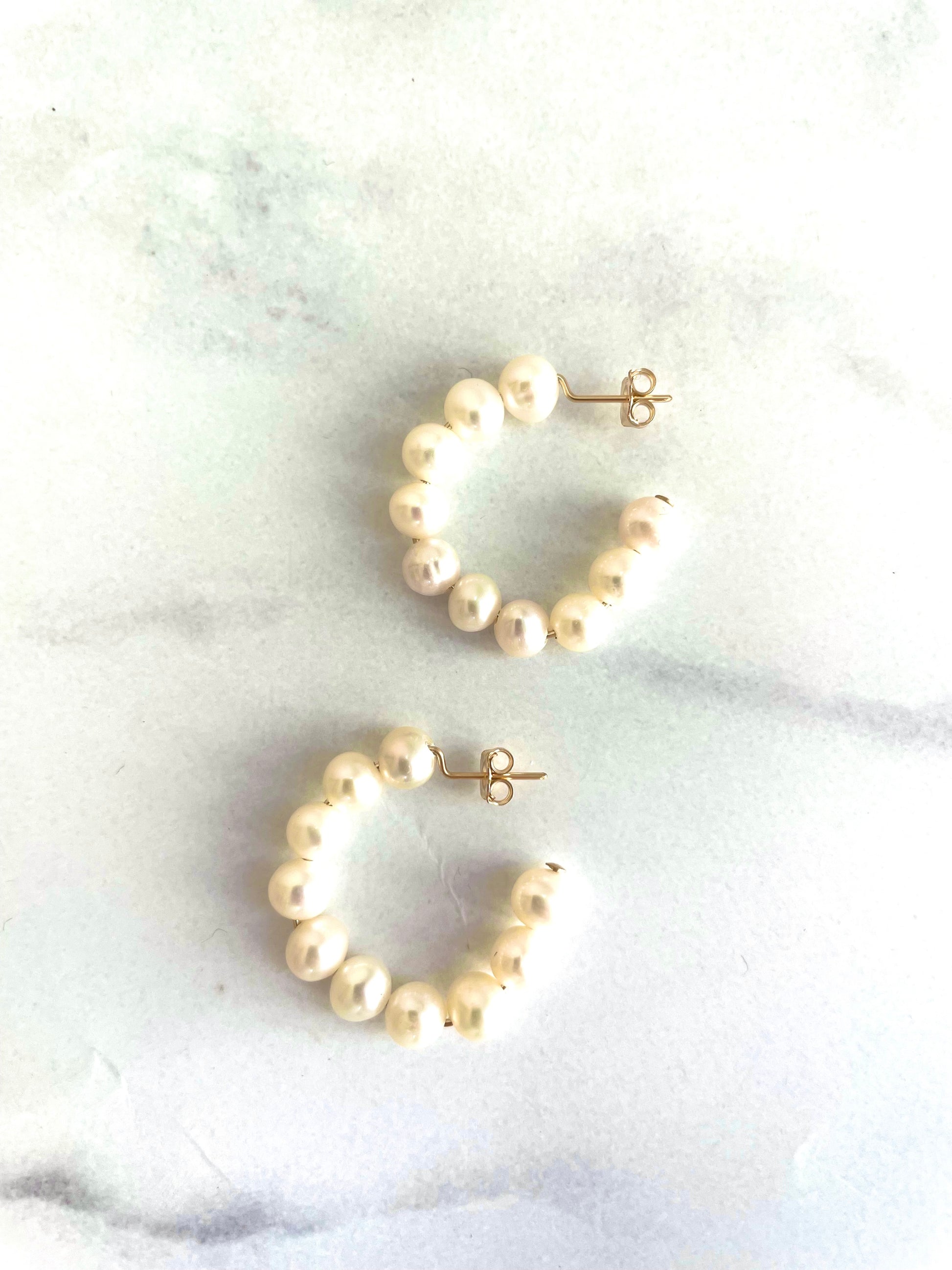 White Pearl Moon Hoops-fresh water pearl #137 #176